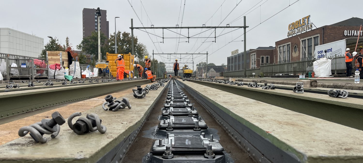 Tijdens de spoorvernieuwing vonden er onverwachts ook conserveringswerkzaamheden plaats aan de spoorgoot, uitgevoerd door firma West. Door goed overleg en een nauwe samenwerking tussen de uitvoerders van beide partijen is het gelukt om gelijktijdig aan het werk te blijven. Ondanks de krappe ruimte op de brug – die tijdelijk aanvoelde als werken op een postzegel – verliep de uitvoering zonder incidenten.